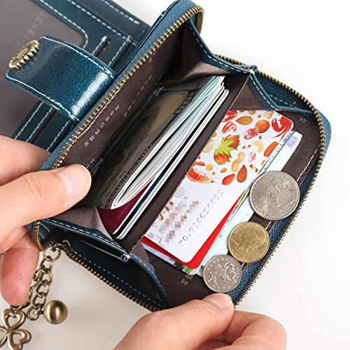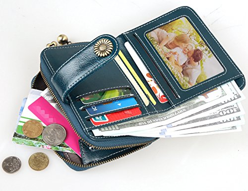 - STRUCTURE & SIZE -- 6 credit card slots and 1 photo slots (for id card or driver's license), 1 removable card sleeve have 3 card slots, 1 full-length compartments to put money. 1 zippered pocket has 2 compartment, roomy enough for fitting plenty of cards, change and some bills, keep them well organized. Compact yet small enough to put into your coat pocket or your cross body bag. Dimensions: 4.72" x 3.94" x 1.18" (12 cm x 10 cm x 3 cm). Empty Weight: 0.34 lb (155 g).