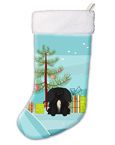 Caroline's Treasures Merry Christmas Tree Pekingese Black Stocking, Large, Multicolor