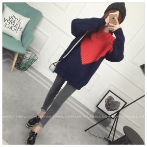 ニット セーター 長袖 バイカラー クルーネック ラウンドネック オーバーサイズ