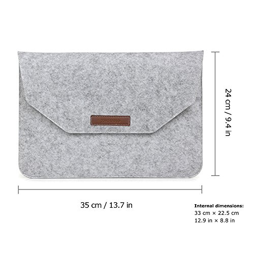 13-Inch Felt Laptop Sleeve, JOKHANG Macbook Case Sleeve for MacBook Air 13.3/ Retina Macbook Pro 13/ iPad Pro 12.9 Inch Sleeve Case Cover Ultrabook Netbook Carrying Case Protector Bag - Light Gray