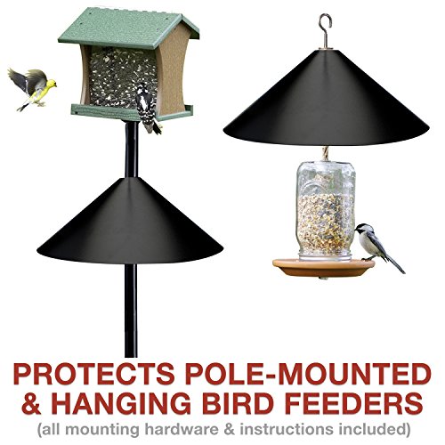 ★ WIDE 17 INCH DIAMETER - Wrap around squirrel baffle quickly attaches to existing bird feeder poles or shepherd hooks (1/2 to 1 inch diameter). Also protects hanging bird feeders - all accessories and easy to follow instructions included.