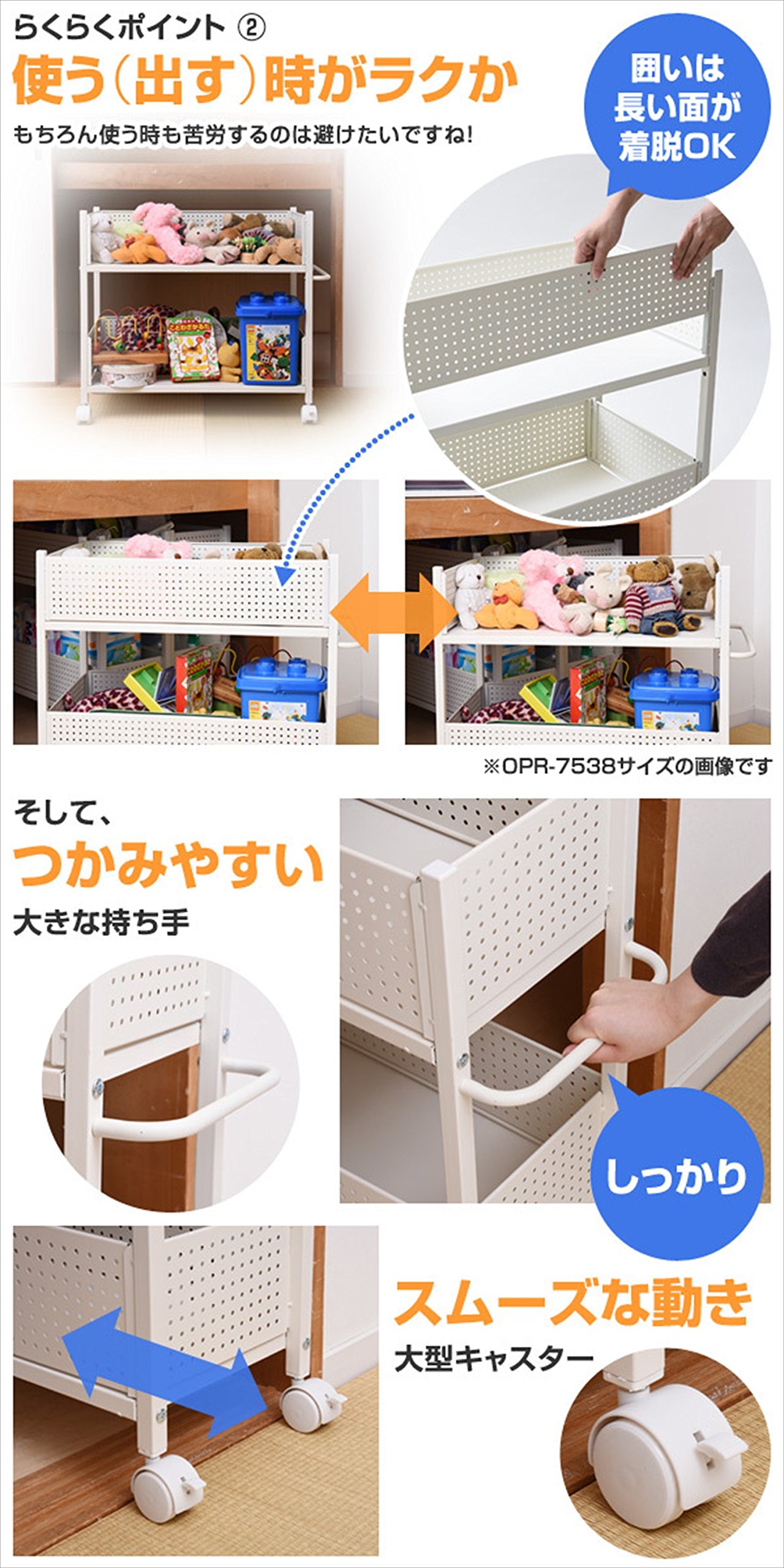 ● Storage rack with casters effective to under the closet's clothes and space under the closet ● Renewal of long-selling model which improved ease of taking out and ease of use on a daily basis based on customer's opinion ● Blindfold panel & clearance