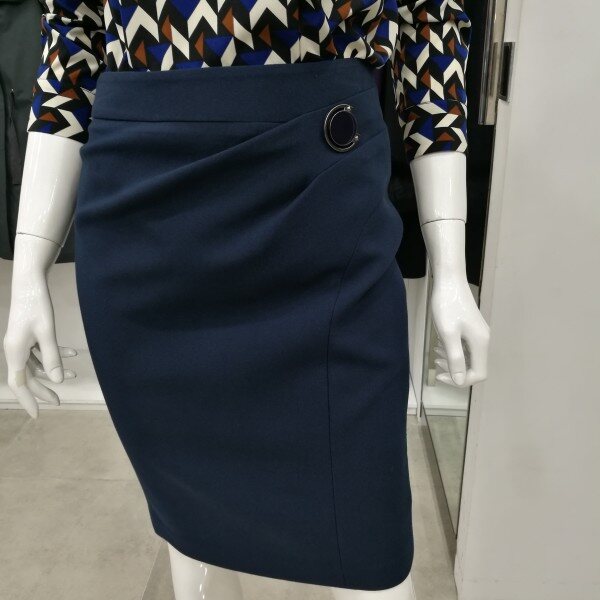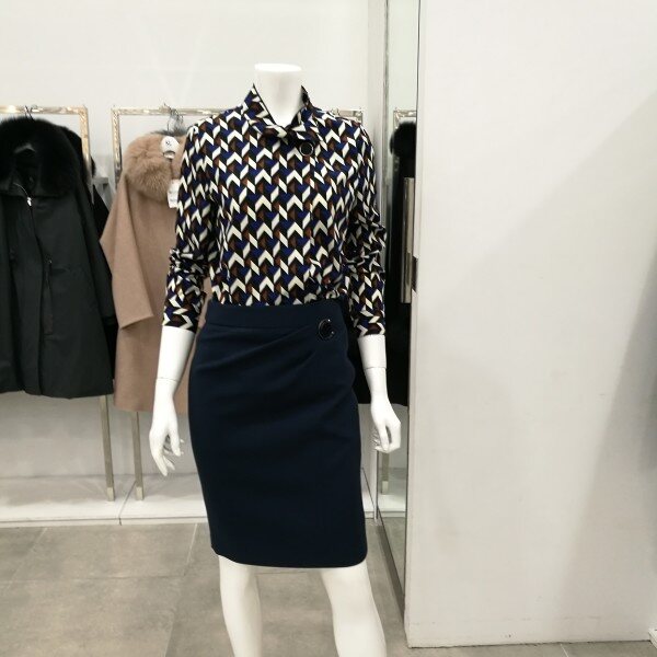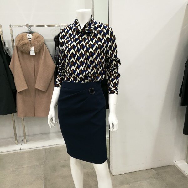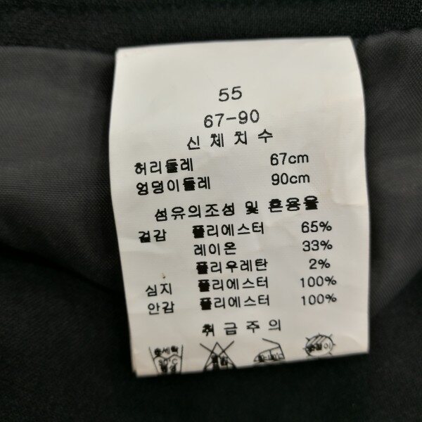 아주 슬림핏으로 짱짱하게나와 딱 붙게 입는 스타일이라 세련되고 고급스럽다. 앞에 장식이 있는쪽으로 살짝 주름을 잡아주어 배나온 부분을 커버해 준다.