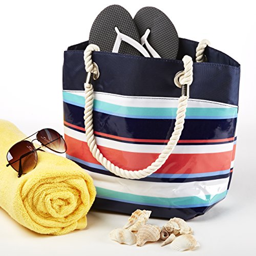 Fit & Fresh Charlestown Beach Bag Tote (Coral Navy Stripe)