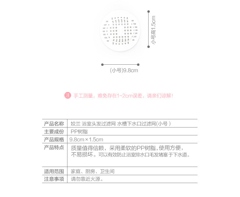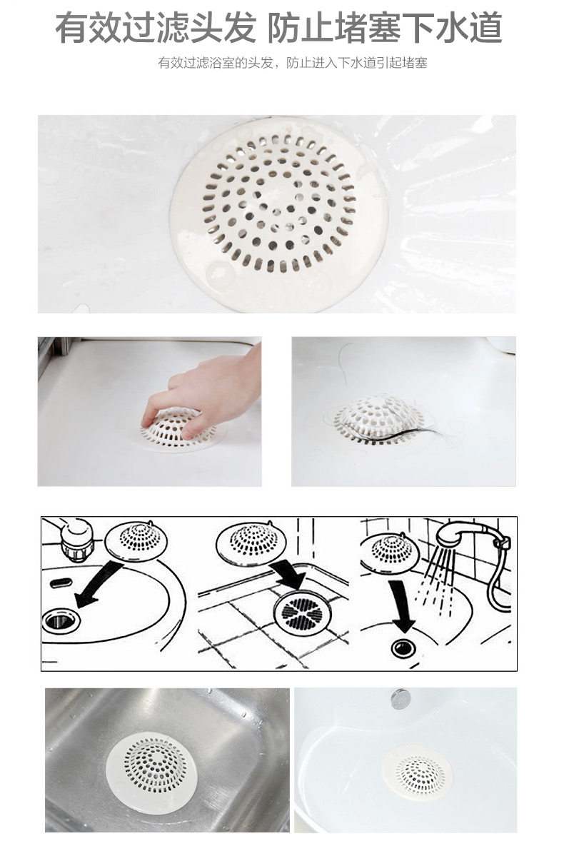 ?姣兰  吸盘过滤网 浴室厨房水槽防堵过滤网片 浴室头发过滤网4个