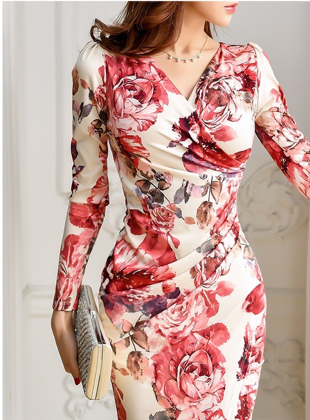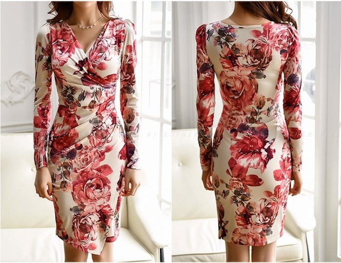 商品名:ワンピース 花柄 フラワー ボタニカル カシュクールワンピース タイトワンピース 春 夏 レディース パーティードレス 40代 ファッション 2017 春夏 新作 ワンピ