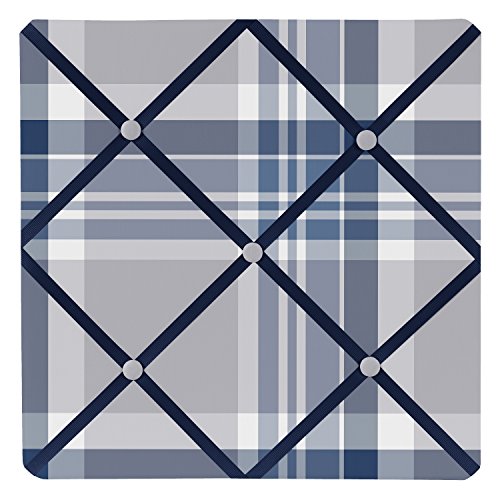 Sweet Jojo Designs Fabric Memory/Memo Photo Bulletin Board for Navy Blue and Gray Plaid Collection
