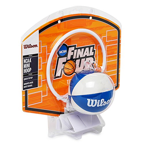 Studio : Wilson Publisher : Wilson Binding : Misc. Product Description The sturdy backboard hangs over any standard door, and the soft vinyl ball is easy to shoot (and dunk if you're tall enough). This deal includes 2 hoop sets so you can play a full mini court game. 0