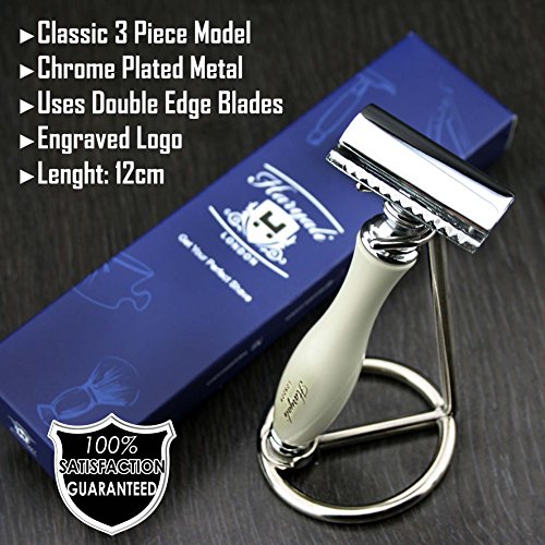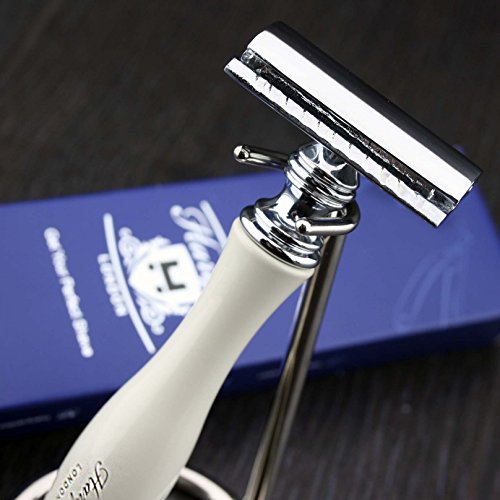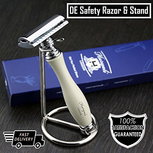 Gent's Classic DE Safety Razor in Elegant Ivory Colour & Stainless Steel Stand (Blades Not Included) | Men's Shaving & Grooming Essentials > Gift for Him