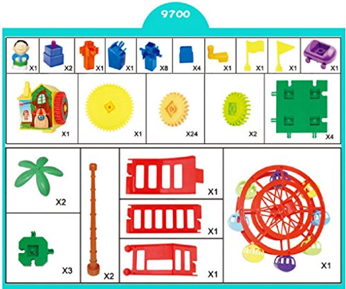 -. Binding : Toy -. Brand : DIY Bricks -. EAN : 0722512538269 -. Feature : MADE FROM SAFE MATERIALS: Made from high quality non-toxic materials, free of phthalates, lead and other heavy-metal. Certified for the Consumer Product Safety Improvement Act (CPSIA) and HR 4040 ASTM / New Concept Frames and Blocks. It express and develop your child's ideas and imaginations. Unleashed Practical Ability and Creativity: Full Step by Step Guide to build the models in the instruction manua -. IsAdultProduct : 0 -. Label : Yue Toys -. Manufacturer : Yue Toys -. ProductGroup : Toy -. ProductTypeName : TOYS_AND_GAMES -. Publisher : Yue Toys -. Studio : Yue Toys -. Title : DIY Brick Gear Toys, Amusement Park toys For Kids, Spins and Plays the 'ABC Song' - 64pcs. Set -. UPC : 722512538269
