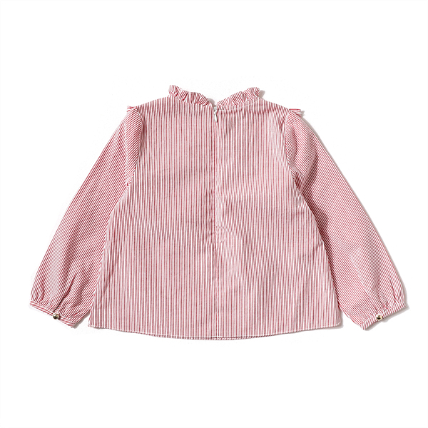 소재-겉감 : 면 100색상-레드 사이즈-110,120,130,145,155,165상세설명-레드 컬러에 스트라이프가 깔끔하고 세련되어 보이는 블라우스 입니다.