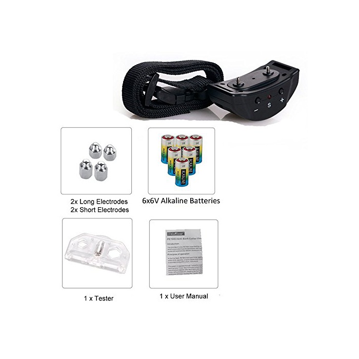 【세트 내용】1*낭비견 짖어 방지 목걸이 1*나일론 벨트 1*6V 전지 금속 probe 2세트 1*영어의 취급 설명서