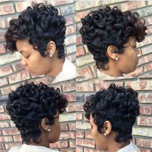 Material: Less Shiny Heat Resistant Synthetic Fiber, Hair closest to the physical properties, appearance, feels very like human hair. Styles: Short Ombre Curly Synthetic Wigs Color: Black Wigs With Brown Bangs Length: Short Weight: about 6.3 oz Package included: 1 x Beautiful fashion Short Wig 1 x Wig cap Application: Easy do-it-yourself application The application takes just about 2 minutes and you can do it all alone without someone's help. FEATURES AND BENEFITS: - Excellent Quality 100% Heat Resistant Fiber made synthetic wig.