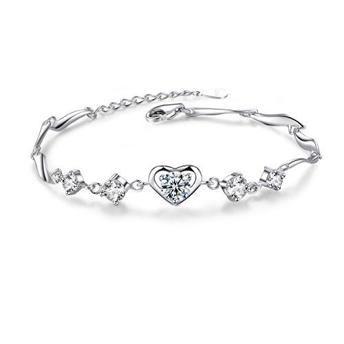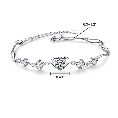 ❤HIGH-QUALITY ❤- Womens bracelets made of 925 Sterling Silver plated white gold . Fastened with a sterling silver lobster clasp ,the adjustable bracelet is punctuated by a beautiful love heart symbol . It is embellished with glittering white 3A cubic zirconia to make it truly eye-catching. The exquisite polish technique is used here . The length of the 925 sterling silver bracelets is 6.3'' + 1.2''.