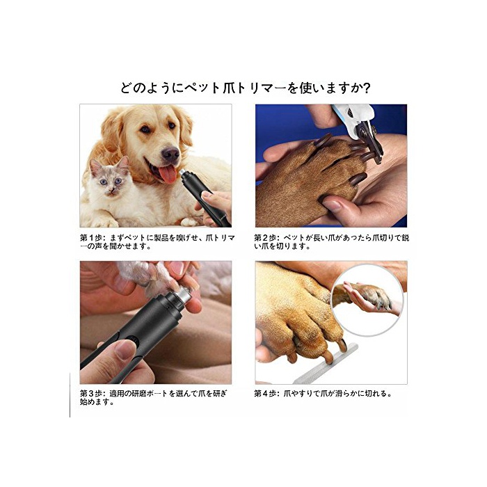 간단 안전:다이아몬드 연마기를 부착,손톱깎기 보다 효과적으로 애완동물의 손톱을 (칼 따위를) 갊,인체 공학에 디자인하고, 손톱을 짧게 자르는 것과 애완동물로 상처를 하는 것을 피합니다.일본 국내1년간의 보증을 제공 합니다.