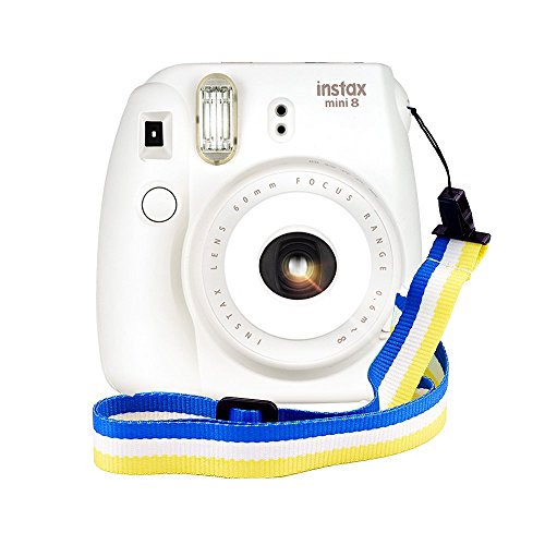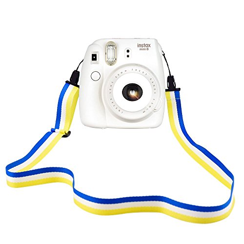 Elvam Camera Neck Shoulder Strap Belt in Rainbow Navy White Yellow Color for Digital Camera / Fujifilm Instax Camera Mini 9 / Mini 8 / Mini 8+ / Mini 7s / Mini 25 / Mini 50s / Mini 90