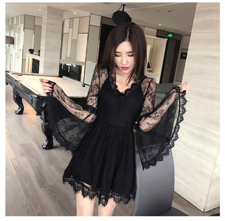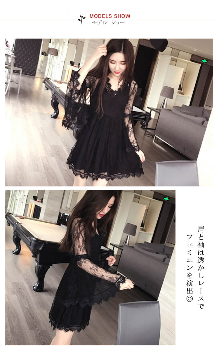 | 可愛いベルスリーブと透かしレースがセクシーなワンピース肩と袖は透かしレースでフェミニンを演出◎スカラップレースをあしらったざっくりVネックがデコルテラインをキレイに見せてくれます背中開きデザインが肌魅せのセクシーワンピースです | |