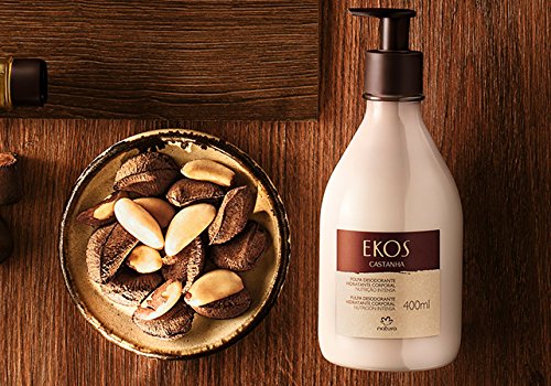 Ekos castanha: nutrição da pele O óleo da castanha, rico em ômega-6 e ômega-9, nutre até as camadas mais profundas e uniformiza a textura da pele. Possuem textura cremosa, fragrância confortável e nutrem a pele, deixando-a macia e com um toque aveludado. Os produtos de Ekos Castanha revelam a riqueza da biodiversidade amazônica ao mesmo tempo em que ajudam a preservar a tradição da colheita de uma de suas árvores mais belas e generosas: a castanheira. Com óleo de castanha, esta polpa nutre a pele intensamente e hidrata por 30 horas. Com textura cremosa e aveludada, rápida absorção e ação desodorante deixa a sua pele macia e delicadamente perfumada.Feature