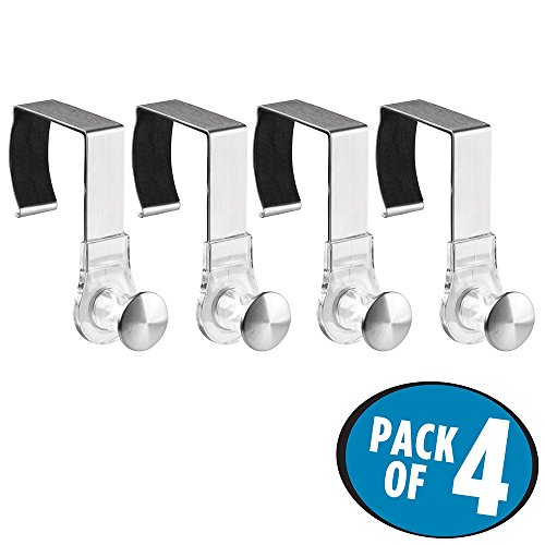 InterDesign Office Cubicle Hooks for Coats, Hats, Purses, Bags, Keychain - Pack of 4, Clear/Brushed Stainless Steel