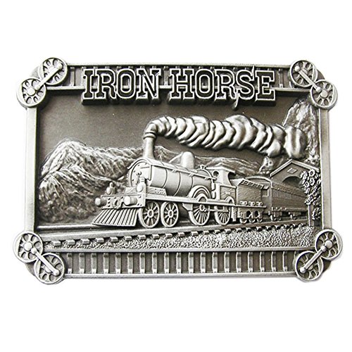 Binding : Apparel Product Description Iron Horse Train Belt Buckle Gurtelschnalle Boucle de ceinture Brand New In Stock Only Buckle No Stand SKU:BUCKLE-T118AS Material: Zinc Alloy Heavy Metal Antique Brushed Silver Color Ship to worldwide Both Safety Material and Plating by Lead Free Length Size is, 3.74 inch, Height Size is, 2.56 inch, Weight is 3.63 oz Length Size is, 95 mm, Height Size is, 65 mm, Weight is 103 g The inner diameter for back loop is, 1.58 inch (40 mm), fits belt up to 1.58 inch (40 mm) Width Button Snap On Belts All of our buckles is fitting to all of our Button Snap on Belts you could please choose your favorite belt in our store 0
