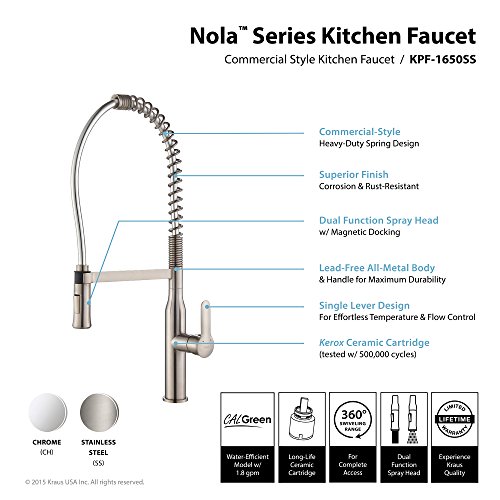Kraus KPF-1650SS Modern Nola Single Lever Commercial Style Kitchen Faucet, Stainless Steel