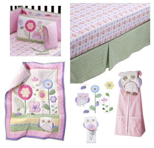 -. Title : 5 pc Circo Baby Girl Owls and Floral She's my Friend Collection- Includes: Owls and Floral 3 Pc Nursery set (comforter, sheet, dust ruffle), Floral Crib Bumper, Petit Fleur Diaper Stacker, Owl Night light, & Petit Fleur Owls and FloralCirco Wall Art Decals