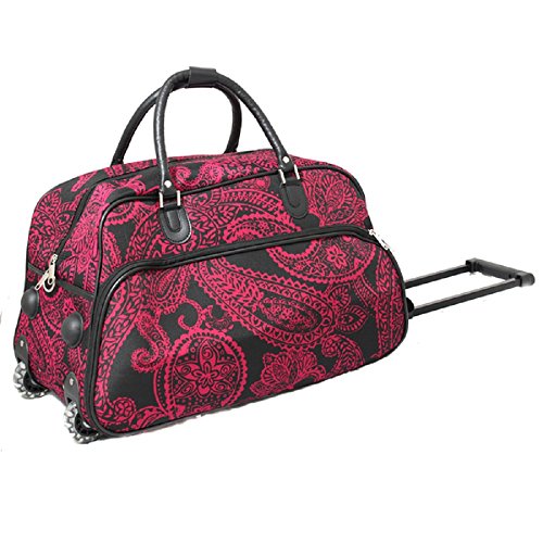 Product DescriptionGirls Black Pink Paisley Carry On Duffel Bag Multi Floral Themed Flower Luggage0