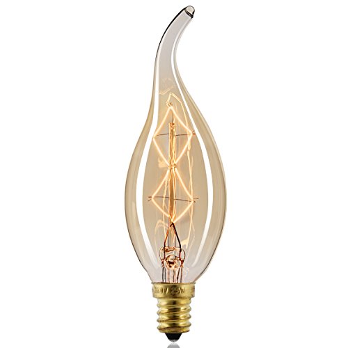 Licperron E12 Edison Candelabra Bulb 2300K 40W C35 Filament Tip Shape Filament Light Bulb Cover, 6 Pack