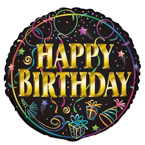 Studio : Unique Industries Publisher : Unique Industries Binding : Kitchen Product Description Give someone special a bold birthday wish with this foil brilliant happy birthday balloon. Over a black background, this helium-quality balloon features a golden "happy birthday" design with Rainbow details great for a kid's birthday party. Inflate this foil balloon using either helium or air via hand-pump before putting it on display with our other birthday party supplies. Then, with curling ribbon, tie it to the guest of honors chair or make a balloon bouquet by attaching it to a weight with other colorful latex balloons. It even looks great outside tied to a mailbox, lamp post, or railing to show your friends and family where to go. Get your next party ready with more of our birthday party supplies. 0