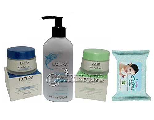 Lacura Antiwrinkle Day & Night Cream + Hydrating Cleanser + Facial Cleansing Wipes 30ct-Aloe Vera