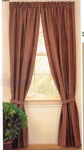 Saffron country plaid kitchen 58" wide x 84" long rectangle tablecloth from Park Designs. Plaid in country red, sage green, and wheat. 100% cotton fabric. Machine wash cold, hang to dry. Cool iron, if needed.Feature