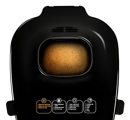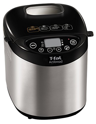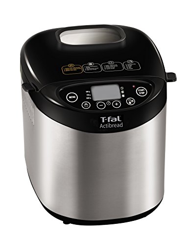 Enjoy delicious recipes and ultimate control over the freshest ingredients with the T-fal Actibread gluten-free bread maker. From healthy breakfast options to delectable after-dinner deserts, the bread machine offers a nice alternative to costly, ingredient-heavy, store-bought selections. The Actibread gluten-free bread maker puts 15 programmable options at your fingertips, including gluten-free salty, gluten-free sweet, and gluten-free cake, as well as rapid whole wheat, whole wheat, salt-free, super rapid, rapid sweet bread, French, sweet, cooking, dough, cake, jam, and pasta. Choose from three loaf sizes (1, 1.5, or 2 lbs) and three crust settings (light, medium, or dark). There’s even a delay-start option (up to 15 hours)—perfect for waking up in the morning to the mouthwatering aroma of freshly baked bread. When finished baking, the Actibread gluten-free bread maker automatically switches over to keep-warm mode for up to an hour, and its non-stick inner pan means effortless food release and quick cleanup. Attractively housed in brushed stainless steel, the powerful 700-watt gluten-free bread maker offers user-friendly controls, an LCD digital display with an indicator light, and a top-loading lid with a viewing window. Accessories include a measuring cup, measuring spoon, hook, kneading blade, and recipe book with 25 tasty bread maker recipes for getting started.Feature