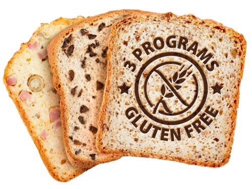 Gluten-free bread maker with 15 programmable settings: gluten-free salty, gluten-free sweet, gluten-free cake, rapid whole wheat, whole wheat, salt-free, super rapid, rapid sweet bread, French, sweet, cooking, dough, cake, jam, and pasta