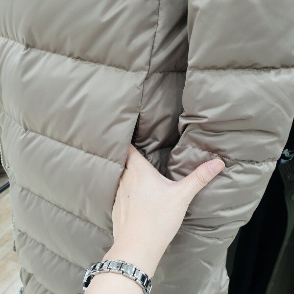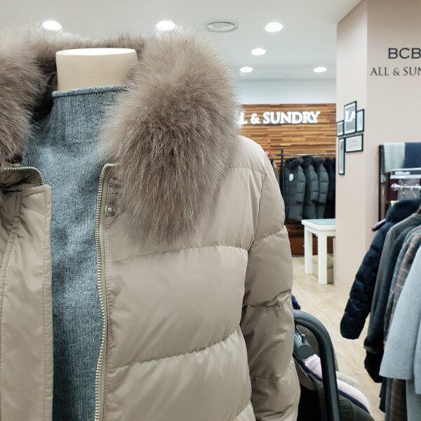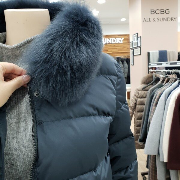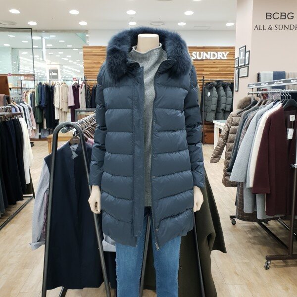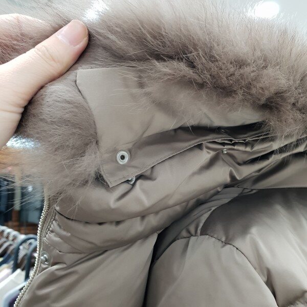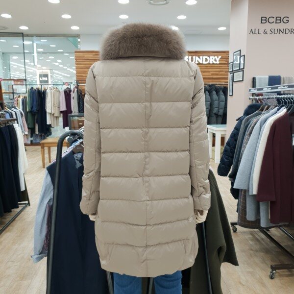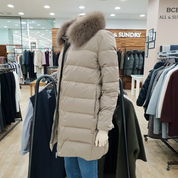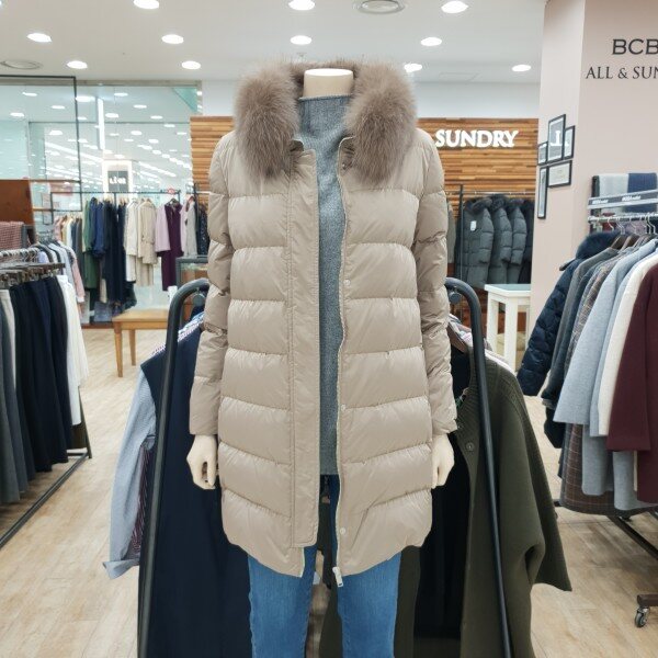천연 폭스퍼 배색으로 고급스러움을 살린 구스다운점퍼베이지,블루 컬러구성
