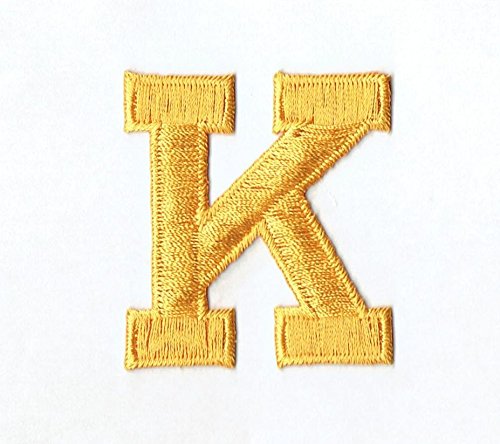-. Title : Alphabet Letter - K - Color Yellow - 2" Block Style - Iron On Embroidered Applique Patch