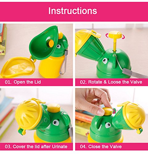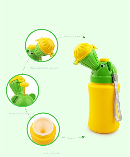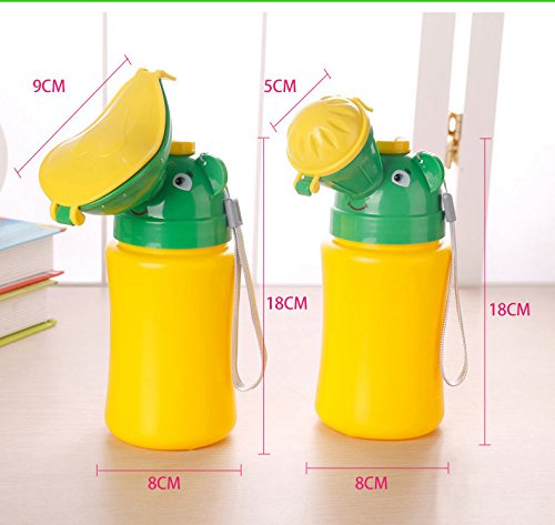 Specifications: Material : ABS, PE , PT Size:approx. 18cm(H) x 8cm(Dia.) Max Capacity: 480ml Color: Mixed Yellow and green Net Weight: 150g Package includes:1* Baby Portable Urinal