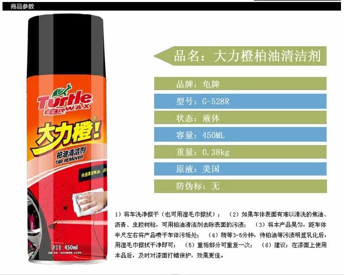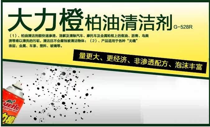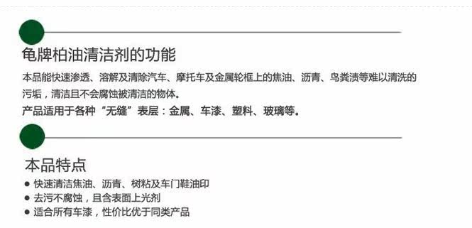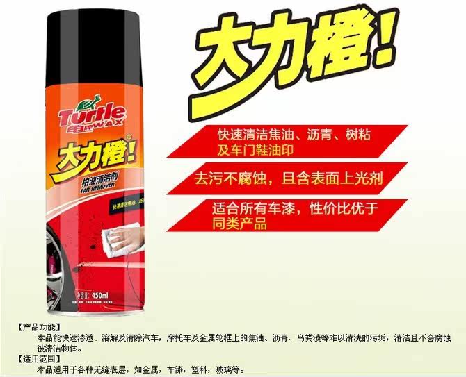 1) asphalt cleaner can quickly penetrate dissolve and remove the dirt of automobilemotorcycle and metal wheel frame tar asphalt guano stains difficult to clean clean andnot corrode the cleaning object; (2) the product applicable to a variety of "seamless"surface: metal paint plastic glass, etc..