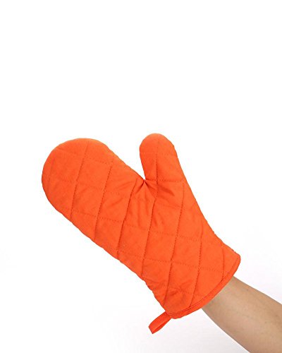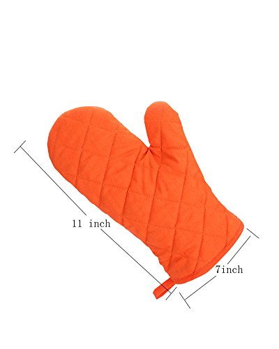 Oven Mitts, Premium Heat Resistant Kitchen Gloves Cotton & Polyester Quilted Oversized Mittens, 1 Pair Orange