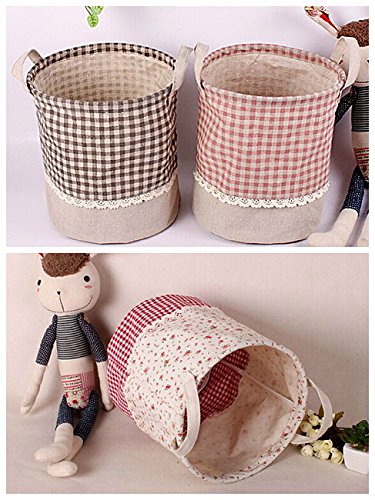 - Feature : This is 1 pcs Multi-function Storage Round Bucket / Material:Eco-friend Cotton Blend Linen Fabric with waterproof coating. / Size:24cm * 27cm(9.45" * 10.63") / Simple Style Zakka Lovely Flower Grid Lacework