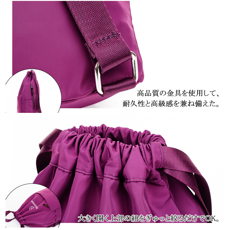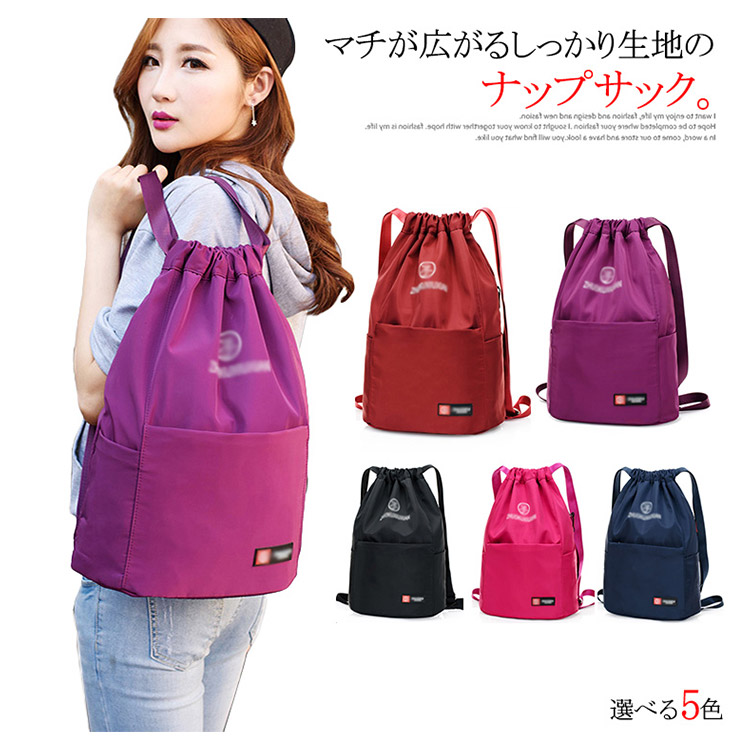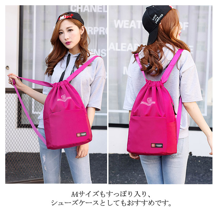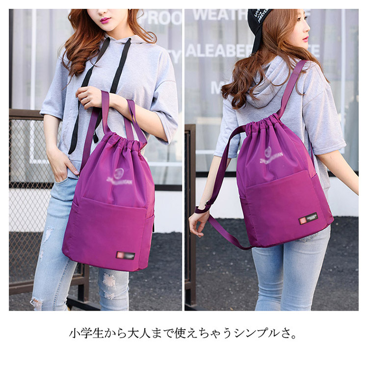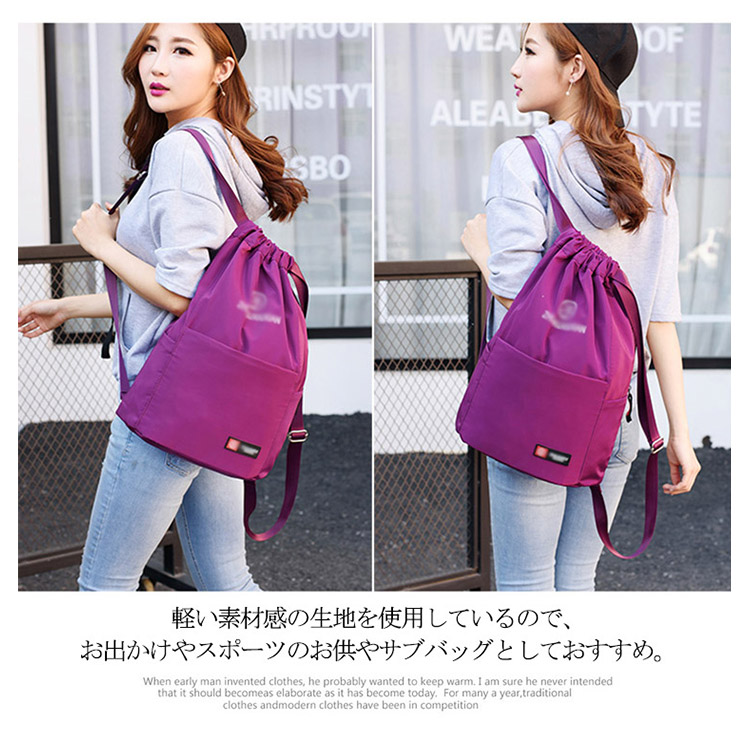 | マチが広がるしっかり生地のナップサック。大きく開く上部の開閉部は物の出し入れもしやすく、紐をぎゅっと絞るだけでOK。小学生から大人まで使えちゃうシンプルさ。A4サイズもすっぽり入り、シューズケースとしてもおすすめです。軽い素材感の生地を使用しているので、お出かけやスポーツのお供やサブバッグとしておすすめ。 | |