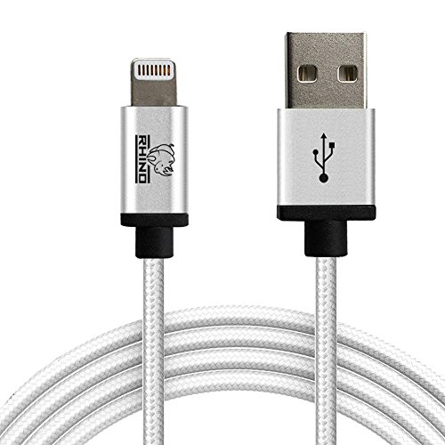 [Description] Aluminum alloy shield not so fragile like those cables with plastic casing_ compact plug allows your freewheeling positions without worrying that every little move will affect the use. 4000+ bend lifespan_ not inferior in charge and sync performance even compared with original cables Extremely practical: portable and flexible_ ideal for use in home_ car_ office and more. Perfect for charging your apple device or transferring/syncing files_ videos_ and music; much stronger than similar lightning cables. Classic and elegant design: fashionable tangle free cable_ well protected by the thick nylon jacket that is covered Apple certified_ mfi (made for iphone/ipod/ipad) lightning cable_ with authorization chip issued by apple to ensure 100% compatibility with any lightning device. One convenient 6-foot Compatible with iPhone 5_ 5c_ 5s_ iPhone 6_ iPhone 6 Plus_ iPhone 6s_ iPhone 6s Plus_ iPhone 7_ iPhone 7 Plus_ iPod Nano 7_ iPod Touch 5_ iPad 4_ iPad5_ iPad Pro_ iPad Air 2_ iPad Air_ iPad mini3_ iPad Mini2_ iPad Mini Retina_ iPad Mini4 *NOT compatible with iPhone 4_ iPad2_ iPad 3_ iPod Nano 6_ iPod Touch 4 or earlier versions. Not compatible with iphone 4_ ipad2_ ipad 3_ ipod nano 6_ ipod touch 4 or earlier versions Lasts 6X Longer: Reinforced stress points with a 6000+ bend lifespan make Rhino Para cord many times more durable than other Lightning cables. Incredibly Strong: 550 Para cord Double-braided nylon exterior_ toughened Kevlar fiber core and laser-welded connectors equip Rhino+ with superior toughness from end-to-end. MFi Certified; Every Rhino Para cord Lightning cable has been certified by Apple to meet or exceed quality control standards_ by exceeding Apple specifications. Made of extra strong Aluminum Plugs Casing with Gold Coated Contacts_ corrosion resistant. Apple MFI Certified Apple Compatible Devices: iPhone 5_ iPhone 5s_ iPhone SE_ iPhone 6_ iPhone 6 Plus_ iPhone 6s_ iPhone 6s Plus_ iPad Air_ iPad Air 2_ iPad Air Pro_ iPad Mini 4_ iPad Mini 3_ iPad Mini 13