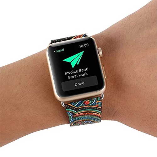 BapUp embroidery Vintage Folk Painting Watch Band Strap for Apple Watch Series 1 2 Leather Bracelet with Connector for 38/42mm