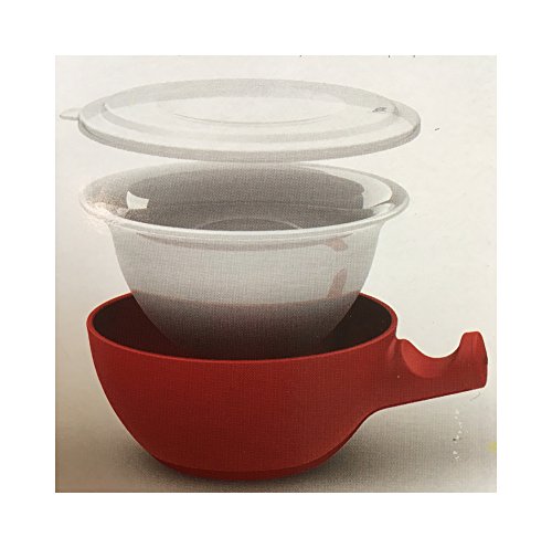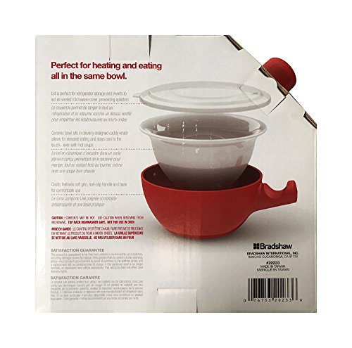 Lid is perfect for refrigerator storage and inverts to act as vented microwave cover, preventing splatters. Ceramic bowl sits in cleverly designed caddy which allows for elevated eating and stays cool to the touch - even with hot soups. Caddy features soft grip, non slip handle and base for comfortable use.Feature