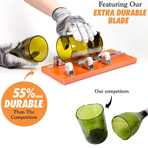 - ✔ BONUS ITEMS INCLUDED: Bundle package includes a premium quality GLASS CUTTER. Along with these devices, you will receive all the accessories you need to use both your bottle cutter and glass cutter: instructions, glasspaper and a pair of CUT RESISTANT GLOVES for your protection; With your purchase you also get both AUDIOBOOK and EBOOK versions of the bestseller book “Bottle Cutter Way” (usually $30) to help get you started; The only bottle cutter on Amazon that includes an audiobook