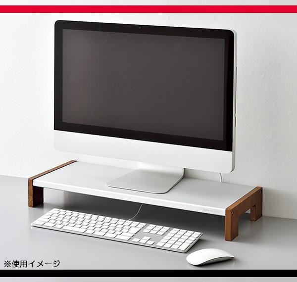アルミ素材で高級感を醸し出したロータイプの机上台です。台下はキーボードや大型ノートPCの収納にご使用いただけます。 |