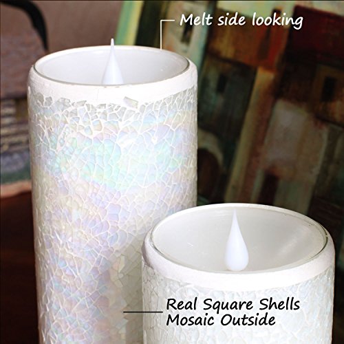 Simplux Moving Wick Led Candle, home Impressions Flameless Wax Candle Lantern with Timer, wedding Decor, mosaic Candle,battery-operated,3x8 Inches, white