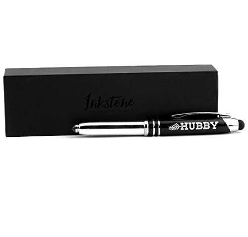 Studio : Inkstone Gifts Publisher : Inkstone Gifts Binding : Office Product Product Description This engraved "HUBBY" gift pen features 3-in-1 functionality, with a ballpoint writing tip, LED light, and stylus for operating touch screen devices such as phones, tablets, and laptops. Elegantly packaged for easy gifting, this pen makes a suitable gift for husbands for a variety of occasions, including anniversary, Valentine's Day, Father's Day, Christmas. Operating Instructions: push down on the bulb tip to click on the LED flashlight; Pull off the black cap to reveal the writing tip. Battery size: 3x LR41 or L736 or AG3 (included). Compatible with mini D1 size ink refills. 0
