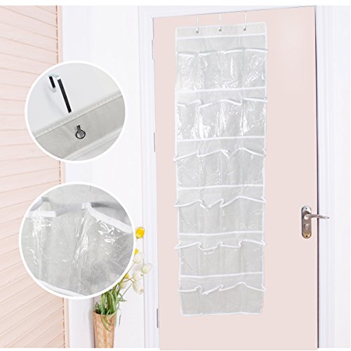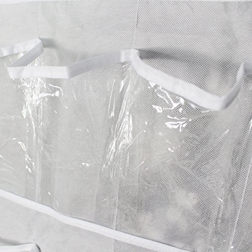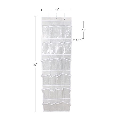 -. Feature : VISIBLE : Transparent PVC bag help to quickly see the goods what you placed . / SAVE PLACE : Frees up floor space by hang on the door with 3 steel hooks .Perfect for organizing bedrooms, closets, laundry room, play room, college dorms. / STRONG APPLICABILITY : Allows many different items of different shapes and sizes.Also great for organizing bathroom and cleaning supplies, toys and crafts. / MATERIAL : White non-woven fabrics, breathable fabric keeps shoes to air out and dust-free. / PRODUCT SIZE : 59 X 18 inch , 24-Pockets, Each pocket 4 X 7.5 inch , The opening girth : 7.5 inch (Suit for women or children"s shoes) Single product weight: 0.536 lbs