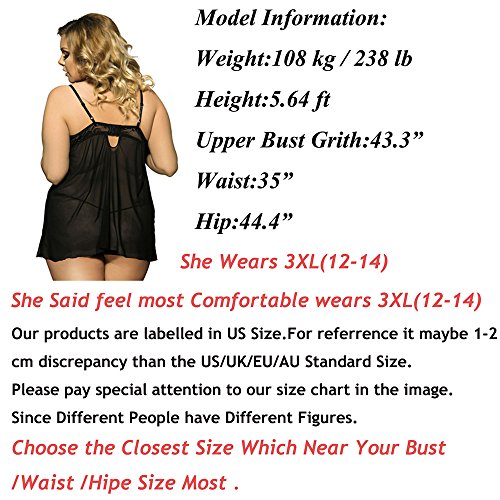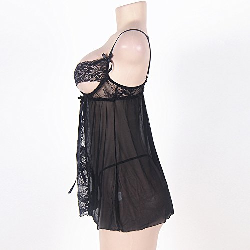 -. Feature : Lace Cupless Lingerie /babydoll with the see through ?tulle design,charming and sexy,High Quality Material:Nylon and Spandex,material provide stretch,silky smooth microfiber / Underwear Package:1 x Lingerie,1 x G-string,1 x Lace Cupless Sleepdress(thigh-high stockings not included) / SEXY PLUS SIZE lingerie set,Available 7 Sizes,M,L,XL,2XL,3XL,4XL,5XL,6XL,suitable for different body sizes people to wear.Perfect for special nights,make yourself sexy, hot and wild / Show off your sexy style with this elegantly seductive lace underwear and G-string set,adjustable straps,detachable garters,retro-inspired design,stunning all-over lace mesh features,makes you much more charming in the evening / Our Sleepwear brand will try our best to provide you the perfect product and services,provided 30 money back and 1 year warranty