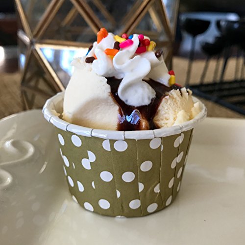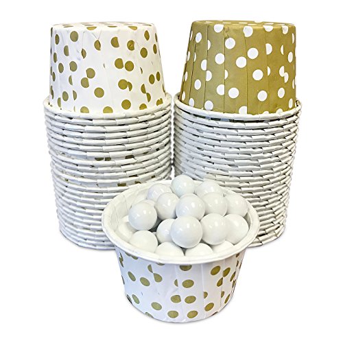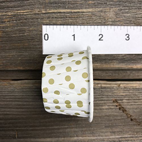 Candy Nut Mini Baking Paper Treat Cups - Gold and White Dot 2 Patterns - 2 x 1.5 Inches - 48 Pack